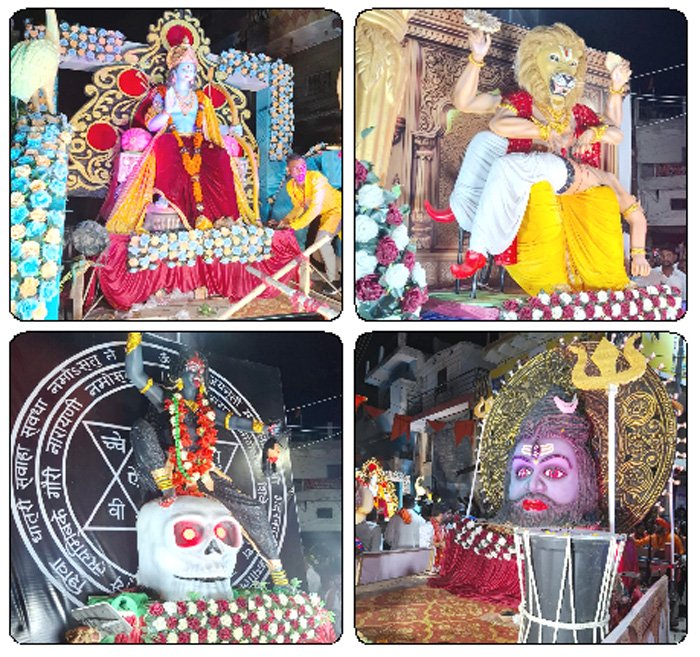 शोभायात्रा में मां महाकाली भगवान नरसिंह और बाबा महाकाल की आकर्षक झांकियां भी शामिल रहीं, जिनके पीछे पीछे मर्यादा पुरुषोत्तम राम की झांकी निकाली गई। नगर के हृदय स्थल नंदा चौक में गोपाल जी मंदिर छोटे मठ के महंत बंशीधर दास मिश्रा ने प्रभु भगवान राम कीमहाआरती की। इस दौरान उन्होंने कहा कि भगवान राम का जीवन सत्य, धर्म और मर्यादा का संदेश देता है तथा उनके जीवन में हनुमान, सुग्रीव, जटायू, विभीषण, शबरी और निषादराज केंवट जैसे पात्रों का महत्वपूर्ण स्थान रहा है। कार्यक्रम के दौरान शांति और सौहार्द और भाईचारा बनाए रखने में पुलिस प्रशासन की अहम भूमिका रही। पुलिस कप्तान आंजनैय वैष्णव के निर्देश में एसडीओपी स्नेहिल साहू, सिटी कोतवाली प्रभारी हक एवं यातायात प्रभारी जितेंद्र चंद्रा अपनी टीम के साथ व्यवस्था संभालते नजर आए। महाआरती के पश्चात वार्ड क्रमांक 9 के पार्षद अमित तिवारी द्वारा श्रद्धालुओं को महाप्रसाद वितरित किया गया वहीं नंदा चौक में बराई महिला समिति द्वारा भी प्रसाद वितरण किया गया। पूरे आयोजन में नगर वासियों ने उत्साह, आस्था और भाईचारे का परिचय दिया।