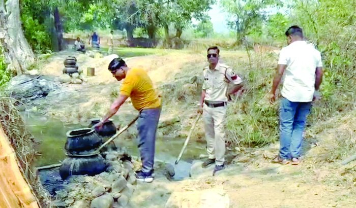 मिली जानकारी के मुताबिक, घरघोड़ा थाना प्रभारी को मुखबिर से सूचना मिली कि ग्राम घरघोड़ी के खेतधरहा नदी किनारे अवैध महुआ शराब बनाई जा रही है। थाना प्रभारी ने इसकी सूचना उच्चाधिकारियों को दी और पुलिस टीम मौके पर पहुंचकर घेराबंदी की। यहां 37 वर्षीय छोटू डनसेना को महुआ शराब बनाते हुए रंगे हाथ पकड़ा गया। पुलिस पूछताछ में आरोपी ने शराब बनाना और अवैध बिक्री के लिए तैयार करना स्वीकार किया। मौके पर भट्टी में बड़े बर्तन रखे हुए थे। पुलिस ने भट्टियों को तोडक़र 8 शराब भट्टियां नष्ट कीं और 190 लीटर महुआ शराब जब्त की। इसके अलावा लगभग 600 किलो महुआ लहन भी नष्ट किया गया। आरोपी के खिलाफ आबकारी एक्ट की धारा 34(2) और 59(क) के तहत अपराध दर्ज कर कार्रवाई की गई है।
