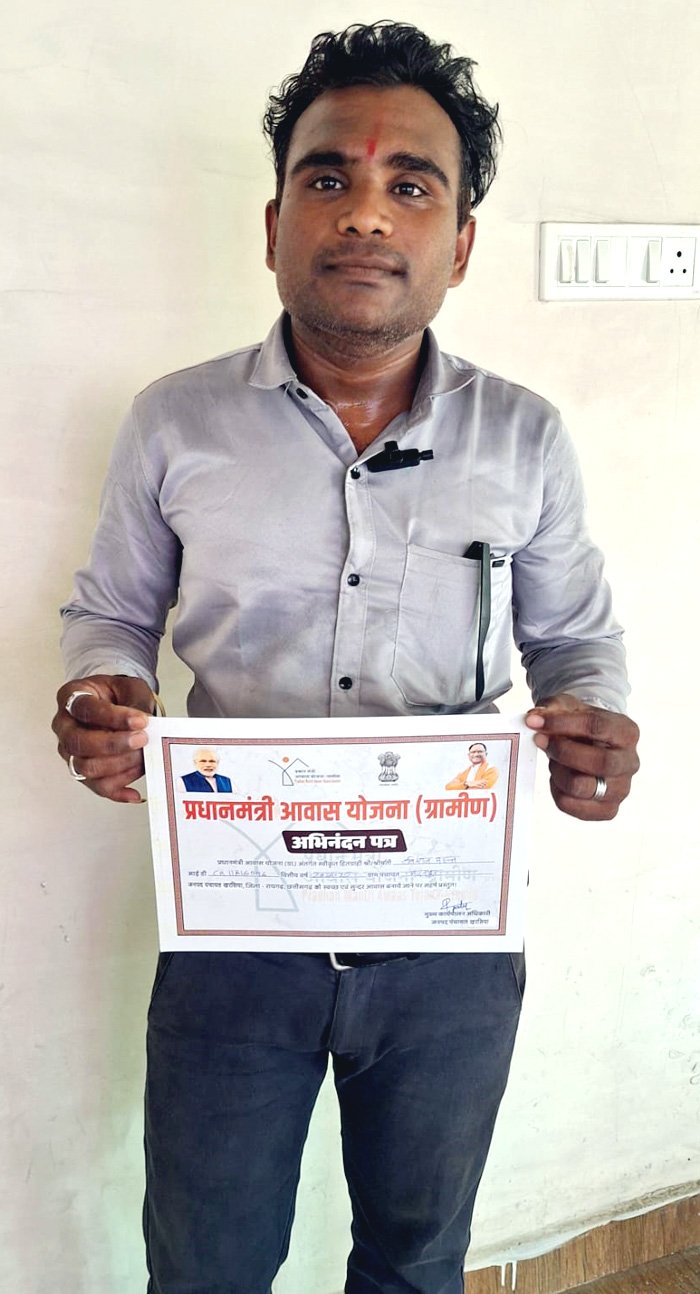 रविराज महंत की माताजी ने पंचायत में आवास योजना के तहत आवेदन किया था। शासन की जनकल्याणकारी योजना के अंतर्गत उनका आवेदन स्वीकृत हुआ और महज चार से पांच महीनों के भीतर आवास का निर्माण पूर्ण कर लिया गया। अब परिवार को सुरक्षित और सम्मानजनक जीवन जीने के लिए पक्का घर मिल चुका है। आज खरसिया में आयोजित जिला स्तरीय जनसमस्या निवारण शिविर में रविराज महंत को स्थानीय जनप्रतिनिधियों द्वारा अभिनंदन पत्र प्रदान कर सम्मानित किया गया तथा उन्हें उनके नए आवास की चाबी भी सौंपी गई। इस अवसर पर उनके चेहरे में खुशी साफ झलक रही थी। रविराज महंत ने कहा कि “हम जैसे गरीब परिवार के लिए पक्का घर एक सपना था, जिसे शासन-प्रशासन ने पूरा कर दिया। इसके लिए मैं शासन और प्रशासन का हृदय से धन्यवाद करता हूं।