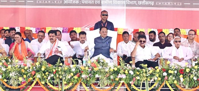 जशपुरनगर 18 अप्रैल 2026/ मुख्यमंत्री विष्णुदेव साय ने आज रणजीता स्टेडियम में आयोजित कार्यक्रम में ग्राम पंचायत स्तर पर नागरिक सुविधाओं की उपलब्धता सुनिश्चित करने की दिशा में एक महत्वपूर्ण पहल करते हुए 375 अटल डिजिटल सुविधा केंद्र भवनों का लोकार्पण किया। इस अवसर पर कार्यक्रम की अध्यक्षता कर रहे उप मुख्यमंत्री श्री विजय शर्मा, पद्मश्री श्री जागेश्वर यादव, विधायक श्रीमती गोमती साय और श्रीमती रायमुनी भगत मौजूद रहे।