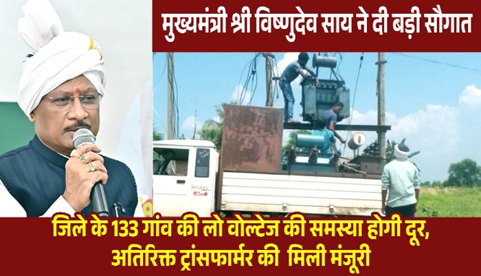 जशपुरनगर। जिले के लोगों के लिए राहत भरी बड़ी खबर सामने आई है। लंबे समय से लो वोल्टेज की समस्या से जूझ रहे ग्रामीणों को अब जल्द ही इस परेशानी से निजात मिलने वाली है। प्रदेश के मुख्यमंत्री विष्णुदेव साय के निर्देश पर जिले के 133 गांव, नगर एवं टोला-मुहल्लों में अतिरिक्त ट्रांसफार्मर स्थापित किए जाएंगे।जिससे जिले की बिजली आपूर्ति में सुधार होगा और ग्रामीण क्षेत्रों में लगातार होने वाली बिजली की समस्या का स्थायी समाधान मिल सकेगा। खासकर किसानों, छात्रों और छोटे व्यवसायियों को इसका सीधा लाभ मिलेगा।