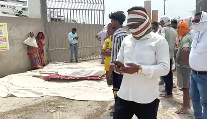 कंपनी के सामने शव रखकर परिजनों ने किया प्रदर्शन