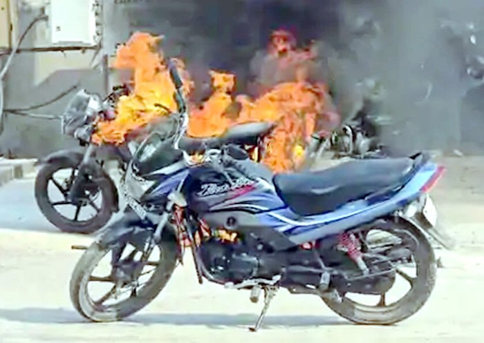 खड़ी बाइक में लगी आग, कुछ ही मिनटों में जलकर खाक