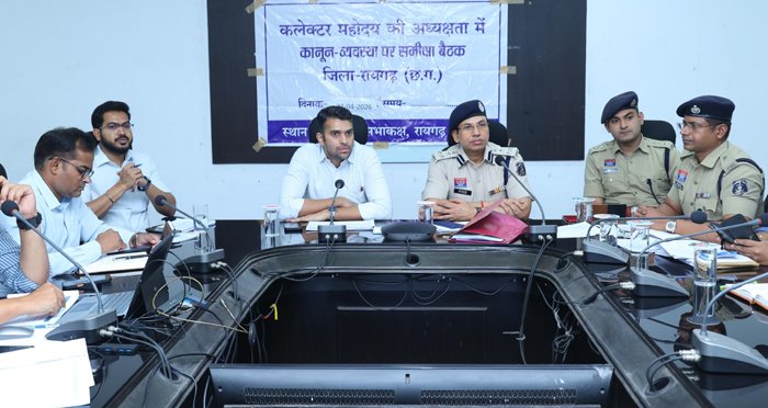रायगढ़। जिले में कानून-व्यवस्था को और अधिक सुदृढ़ बनाने, सडक़ दुर्घटनाओं में कमी लाने तथा सामाजिक सुरक्षा से जुड़े विभिन्न पहलुओं पर प्रभावी अमल सुनिश्चित करने के उद्देश्य से कलेक्टर एवं जिला दण्डाधिकारी मयंक चतुर्वेदी तथा वरिष्ठ पुलिस अधीक्षक शशि मोहन की संयुक्त अध्यक्षता में समीक्षा बैठक आयोजित की गई। प्रात: 10 बजे प्रारंभ हुई बैठक में कानून व्यवस्था से जुड़े 16 महत्वपूर्ण एजेंडों पर विस्तारपूर्वक चर्चा करते हुए संबंधित विभागों के अधिकारियों को स्पष्ट एवं सख्त निर्देश दिए गए। बैठक में वरिष्ठ पुलिस अधिकारियों सहित संबंधित विभागों के अधिकारियों ने एजेंडा वार बिंदुओं पर विस्तार से चर्चा करते हुए ठोस रणनीति तय की और आवश्यक दिशा-निर्देश जारी किए।