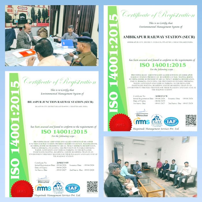 बिलासपुर। भारतीय रेलवे की ‘स्वच्छ रेल, स्वच्छ भारत’ परिकल्पना को साकार करते हुए दक्षिण पूर्व मध्य रेलवे के बिलासपुर मंडल ने पर्यावरण प्रबंधन के क्षेत्र में एक उल्लेखनीय एवं ऐतिहासिक उपलब्धि अर्जित की है। मंडल के 09 प्रमुख रेलवे स्टेशनों को अंतरराष्ट्रीय मानकों के अनुरूप आईएसओ 14001:2015 पर्यावरण प्रबंधन प्रणाली का प्रतिष्ठित प्रमाण पत्र प्राप्त हुआ है। यह उपलब्धि मंडल रेल प्रबंधक राकेश रंजन के कुशल मार्गदर्शन तथा वरिष्ठ मंडल यांत्रिक अभियंता, वरिष्ठ मंडल वाणिज्य प्रबंधक एवं मंडल यांत्रिक अभियंता, के प्रभावी नेतृत्व में संभव हुई है। यह प्रमाणन अत्यंत सघन एवं चुनौतीपूर्ण ऑडिट प्रक्रिया के उपरांत प्रदान किया गया, जिसमें स्टेशनों की स्वच्छता, अपशिष्ट प्रबंधन, जल संरक्षण, ऊर्जा दक्षता एवं पर्यावरण जागरूकता जैसे विभिन्न पहलुओं का गहन मूल्यांकन किया गया। इस अभियान के अंतर्गत बिलासपुर, चांपा, रायगढ़, कोरबा, अनूपपुर, पेंड्रारोड, शहडोल, उमरिया एवं अंबिकापुर सहित कुल 09 स्टेशनों को पर्यावरण अनुकूल कार्यप्रणाली के लिए यह प्रमाण पत्र प्रदान किया गया है। उल्लेखनीय है कि मंडल पर्यावरण एवं हाउसकीपिंग प्रबंधन एवं वाणिज्य विभाग द्वारा सभी विभागों के साथ बेहतर समन्वय करते हुए इन स्टेशनों पर अपशिष्ट प्रबंधन, जल संरक्षण, ऊर्जा दक्षता तथा प्रदूषण नियंत्रण के उच्च मानकों को रिकॉर्ड समय में लागू किया गया। इन प्रयासों के परिणामस्वरूप अंतरराष्ट्रीय प्रमाणन एजेंसी द्वारा यह प्रतिष्ठित प्रमाणन प्रदान किया गया। आईएसओ 14001:2015 प्रमाणन प्राप्त करना इस बात का प्रमाण है कि बिलासपुर मंडल न केवल उत्कृष्ट रेल संचालन के लिए प्रतिबद्ध है, बल्कि पर्यावरण संरक्षण, स्वच्छता एवं सतत विकास के प्रति भी पूरी निष्ठा से कार्य कर रहा है। रेल प्रशासन द्वारा भविष्य में भी इस प्रकार की पर्यावरण अनुकूल पहलों को बढ़ावा देते हुए यात्रियों को स्वच्छ, सुरक्षित एवं हरित वातावरण उपलब्ध कराने के लिए निरंतर प्रयास किए जाते रहेंगे।