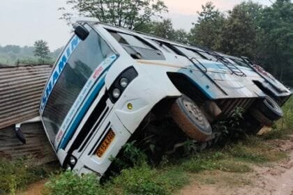 तेज रफ्तार शमीम बस अनियंत्रित होकर पलटी, दो यात्री घायल