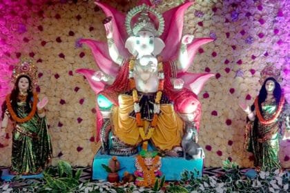 नटवर स्कूल मैदान में महाराष्ट्र मंडल सदस्य कर रहे गणपति की आराधना