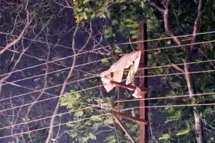 तेज हवाओं से गिरे बिजली के खंभे, बैनर उडक़र बिजली तारों में फंसे