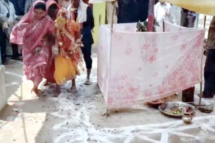 अंगारों पर चलकर दूल्हा-दुल्हन का गृह प्रवेश