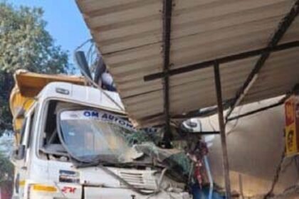 बेलगाम फ्लाईएश वाहन बिजली खंभा को तोड़ते हुए दुकान में घुसा