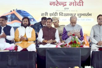पीएम मोदी ने वीडियो कांफ्रेंसिंग के माध्यम से वंदे भारत एक्सप्रेस को दिखार्द हरी झंडी