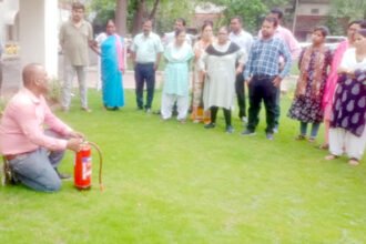 मंडल रेल प्रबंधक कार्यालय परिसर में वाणिज्य विभाग सहित विभिन्न विभागों के कर्मचारियों को अग्निशमन यंत्र चलाने का दिया गया प्रशिक्षण