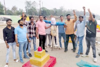 युवा कांग्रेस का अनूठा प्रदर्शन, लोकतंत्र को डुबाने वालो को किया विसर्जित