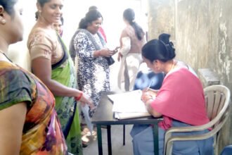 महतारी वंदन के आवेदन करने आंगनबाड़ी केंद्रों में सुबह से लग रही भीड़