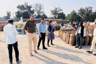 चपले धान खरीदी केंद्र के निरीक्षण में पहुंचे कलेक्टर