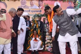 सुनील रामदास ने मुख्यमंत्री विष्णुदेव साय व कैबिनेट मंत्री ओपी चौधरी को लड्डुओं से तौला