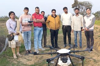 ड्रोन से किया गया नैनो यूरिया खाद का छिडक़ाव