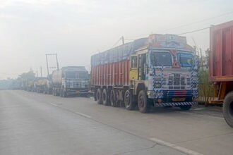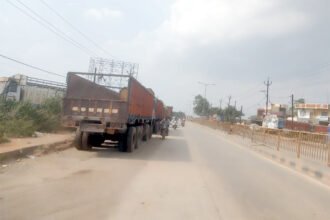 रायगढ़. नेशनल हाईवे के किनारे बेतरतीब खड़ी भारी…