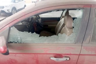 वर्कशॉप के बाहर वाहनों के शीशे में तोडफ़ोड…