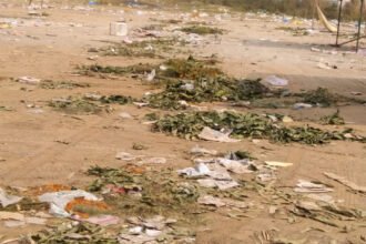 कचरा व गंदगी से अटा पड़ा है नटवर स्कूल मैदान