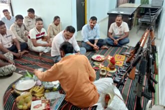 थाना घरघोडा में एसडीओपी धरमजयगढ़ और टीआई घरघोड़ा थाना स्टाफ के साथ मिलकर किये शस्त्रों की पूजा