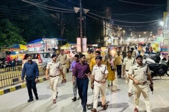 प्रशासन व पुलिस ने संयुक्त रूप से निकाला फ्लैग मार्च