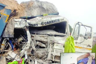 दो हाइवा में भिड़ंत, एक चालक की मौत, दूसरा घायल