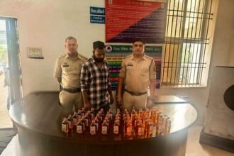 कोतवाली पुलिस की लाखा में दबिश, 48 नग अंग्रेजी शराब जब्त
