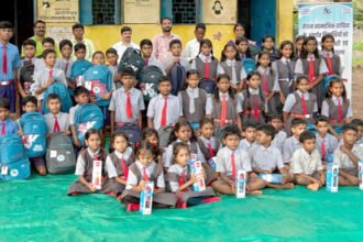 एनटीपीसी लारा द्वारा सामाजिक दायित्व के अंतर्गत छात्रों को स्कूल बैग, स्टेशनरी और पानी की बोतलों का वितरण