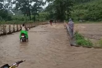 धरमजयगढ में बारिश का कहर, ऊफान पर नदियां नाले,थम गया जनजीवन