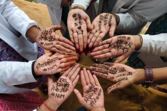 मेंहदी से गूंजी हक की पुकार, एनएचएम कर्मचारियों ने 10 सूत्रीय मांगों के लिए बुलंद की आवाज