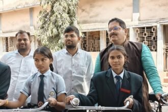 जिला भाजपा अध्यक्ष के हाथों छात्राओं को सरस्वती सायकल का वितरण
