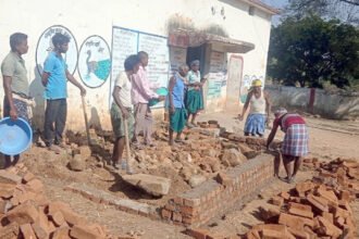 चेरूडीपा स्कूल में सामुदायिक सहभागिता से बना चबूतरा एवं मैदान समतलीकरण