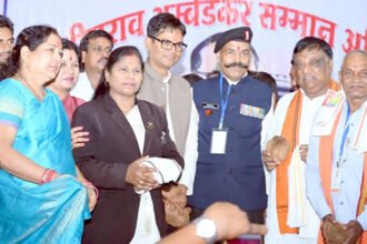 डॉ. भीमराव अंबेडकर सम्मान समारोह में पहुंचे जिले के प्रभारी मंत्री ओपी चौधरी