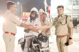 यातायात नियमों का पालन करने वाले वाहन चालकों को भेंट किया गुलाब