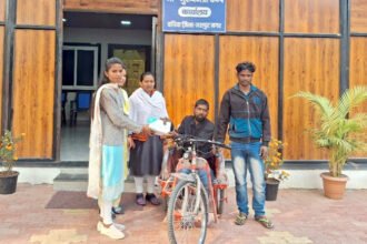 मुख्यमंत्री कैंप कार्यालय में पुरेन्द्र को मिली बैटरी चलित ट्रायसायकल