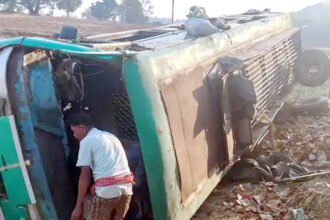 मोबाइल के चक्कर में बस चालक ने गंवाया नियंत्रण