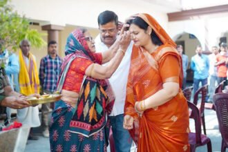 अभिलाषा ने सासु मां का आशीर्वाद लेकर दाखिल किया नामांकन