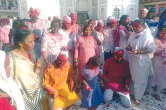 केसर के रंग, गुलाल और फूलों की पंखुडिय़ां से सराबोर हो गया महामती प्राणनाथ जी का मंदिर प्रांगण
