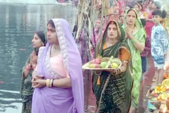 सीएम साय ने धर्मपत्नी के साथ कुनकुरी छठ घाट में उगते सूर्य को दिए अर्घ्य