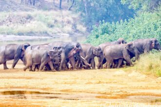 २६ हाथियों का दल गोमर्डा अभ्यारण से पहुंचा माधोपाली