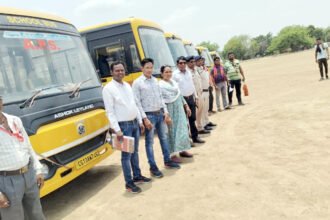 सिटी कोतवाली सारंगढ़ द्वारा स्कूल बसों की फिटनेस जांच