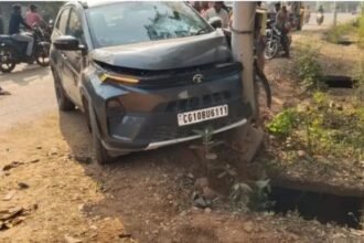 ओवर स्पीड कार ने लोहे के पोल में मारी टक्कर