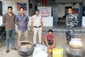 आंगन में बना रहे भारी मात्रा में शराब कोसीर पुलिस ने दी दबिश