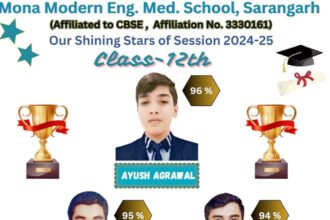 मोना मॉडर्न सारंगढ़, सीबीएसई बारहवीं में आयुष 96 प्रतिशत एवं दसवीं में होमेश 96 प्रतिशत के साथ टॉप