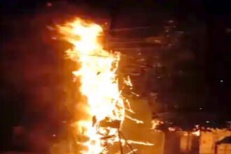 बिजली खंभे में लगी आग, आधे घंटे की मशक्कत के बाद पाया काबू