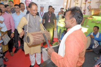 मुख्यमंत्री श्री साय ने मांदर बजाकर वादकों का उत्साह बढ़ाया, परंपरागत वाद्ययंत्रों को सुना