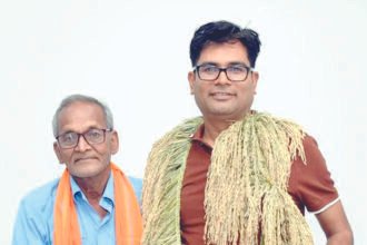 किसान ने धान से बनी माला पहना ओपी को दी अनोखी बधाई