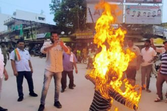 मुख्यमंत्री एवं गृहमंत्री का पुतला दहन