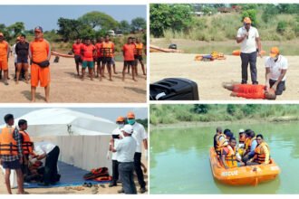 पुसौर के सिंगपुरी में 50 जवानों ने महानदी में किया सुरक्षा अभ्यास